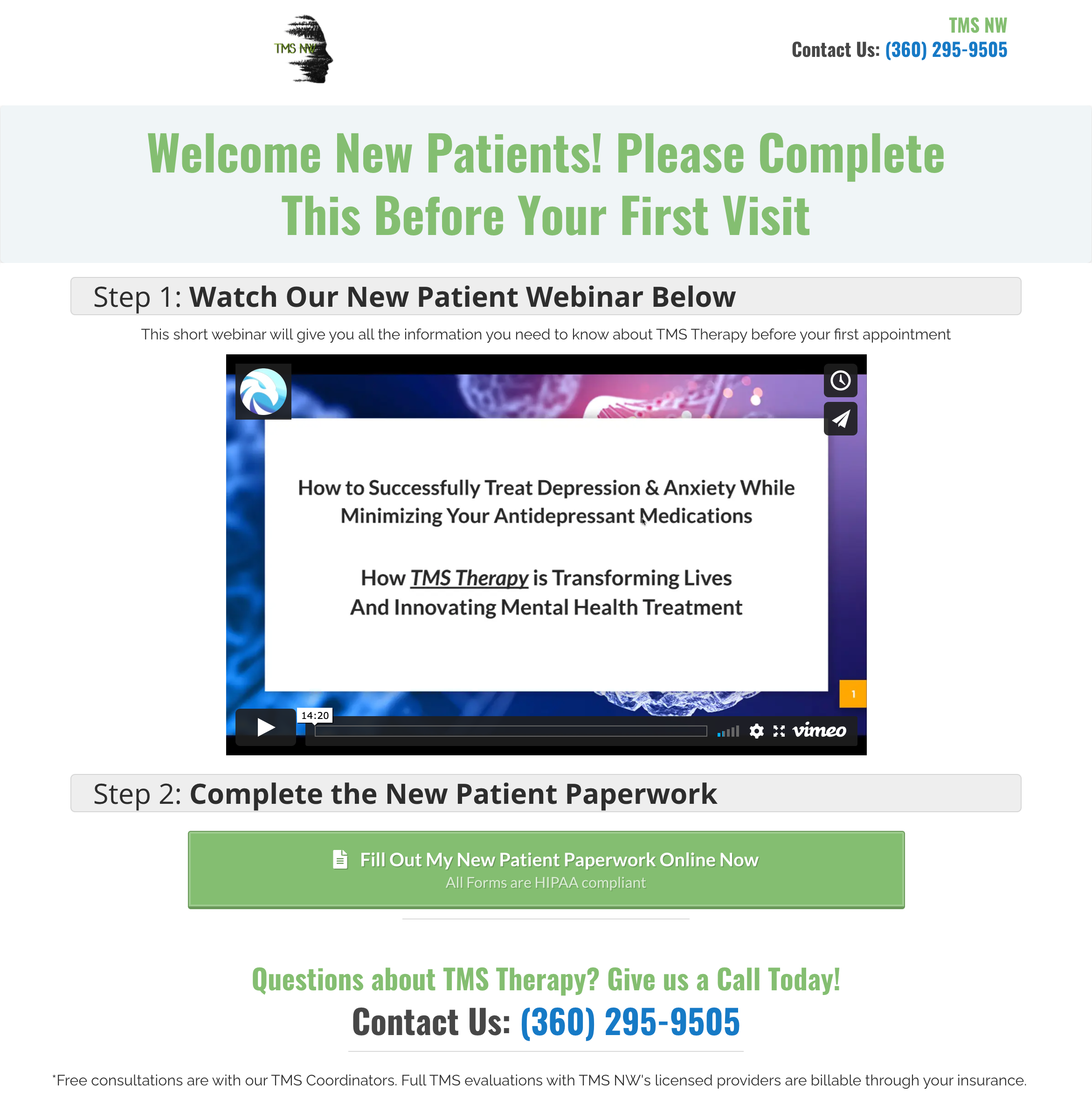 "That way, Mr. Jones, when you come in for your first appointment, you'll have a better understanding of (TMS Therapy / Ketamine Infusion Therapy) AND you'll have your paperwork completed already!