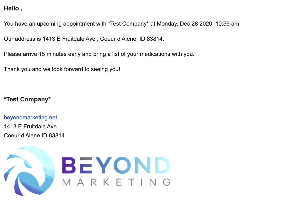 Typically, when you schedule a new patient, they get a follow up appointment confirmation text and email with your address and the appointment time.